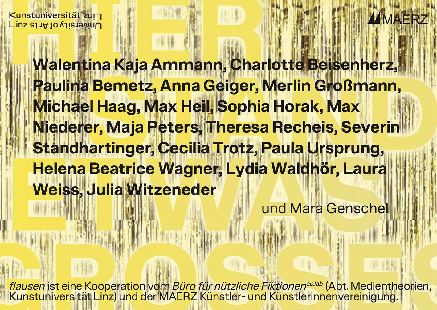 FLAUSEN ist eine Kooperation vom Büro für nützliche Fiktionen co.lab. (Abteilung Medientheorien, Kunstuniversität Linz) und der MAERZ Künstler- und Künstlerinnenvereinigung.